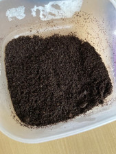 In der 9. Klasse gehen wir u.a. auch dieser Frage nach. Auf frischem Kaffeesatz, dem „Abfall“, der täglich in riesigen Mengen anfällt, wollen wir verschiedenen Samen ziehen. Kürbiskerne, Bohnen, Tomaten, Paprika, Mandarinen wurden in einen Behälter mit frischem Kaffeesatz gegeben. Deckel drauf und nach einer Woche am Fenster (im Winter nahe der Heizung), ohne zusätzliches Wasser, beginnen die ersten Samen zu keimen.